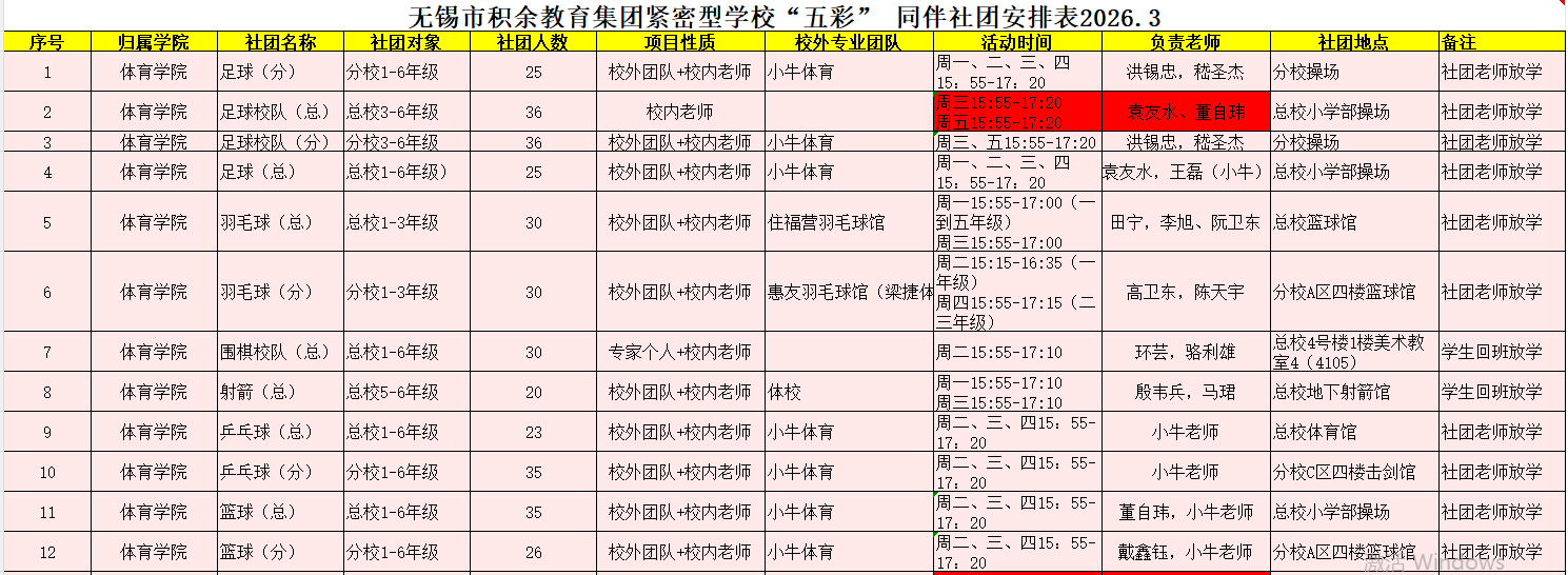 2025-2026小学社团表