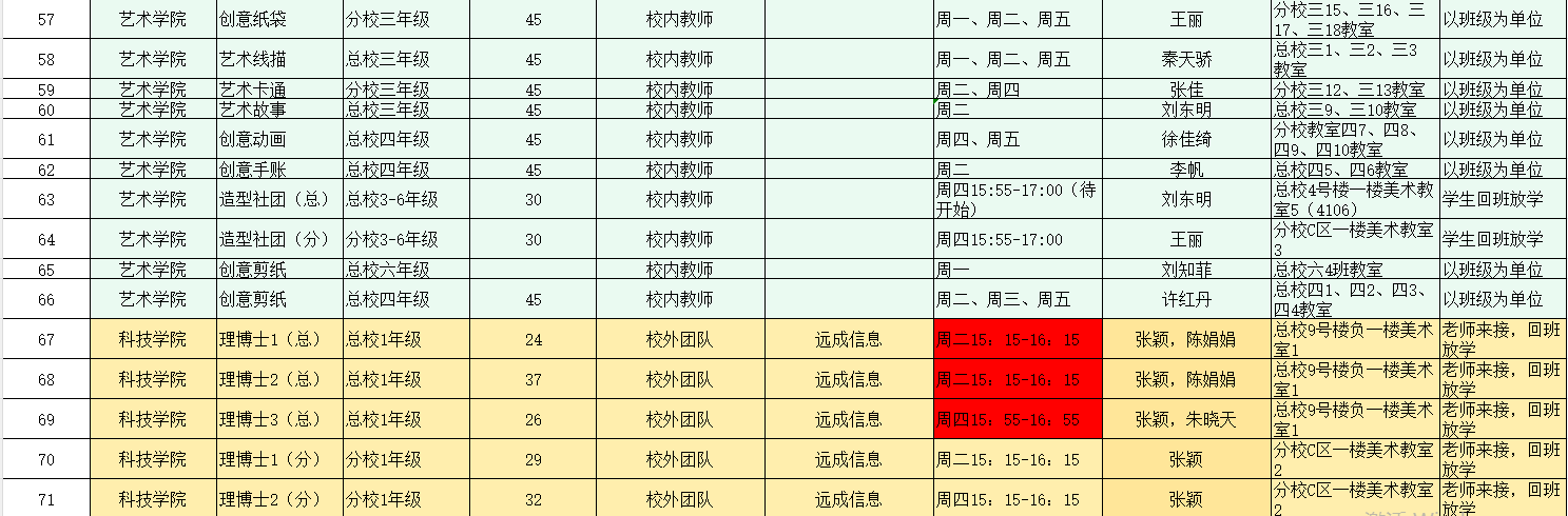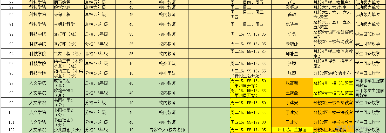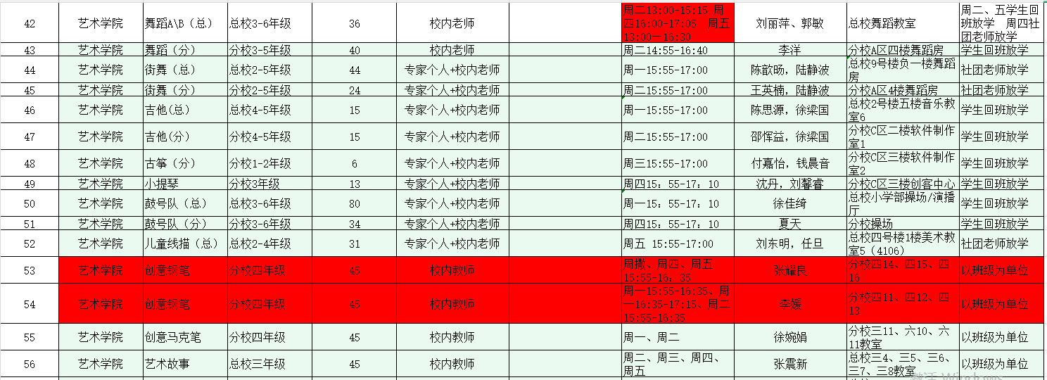 2025-2026第二学期总校课表总课程表