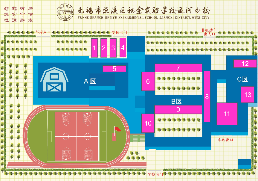 积余实验学校总校活动区域鸟瞰图(含零碎场地划分)