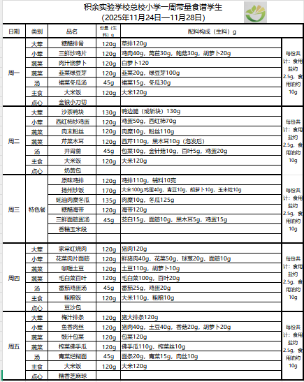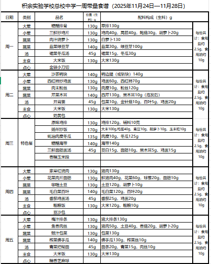 25年秋季第十九周菜单