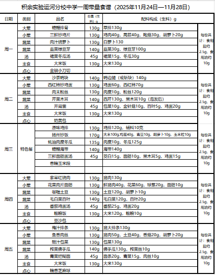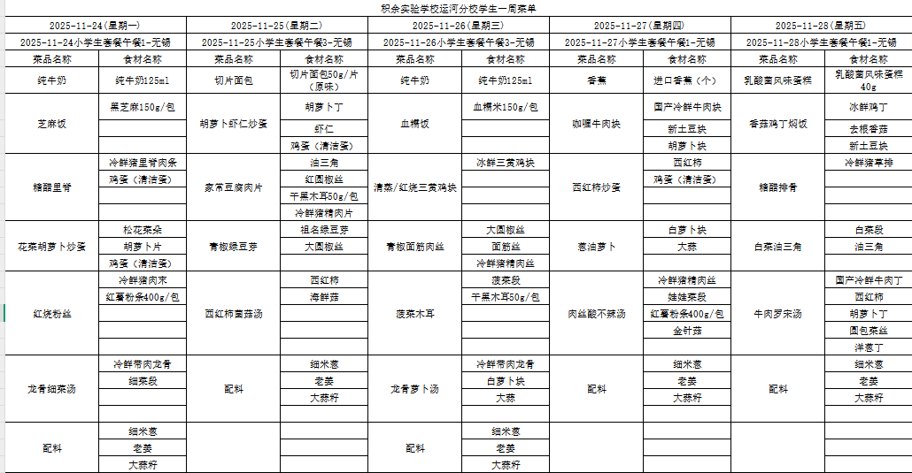 25年秋季第十六周菜单