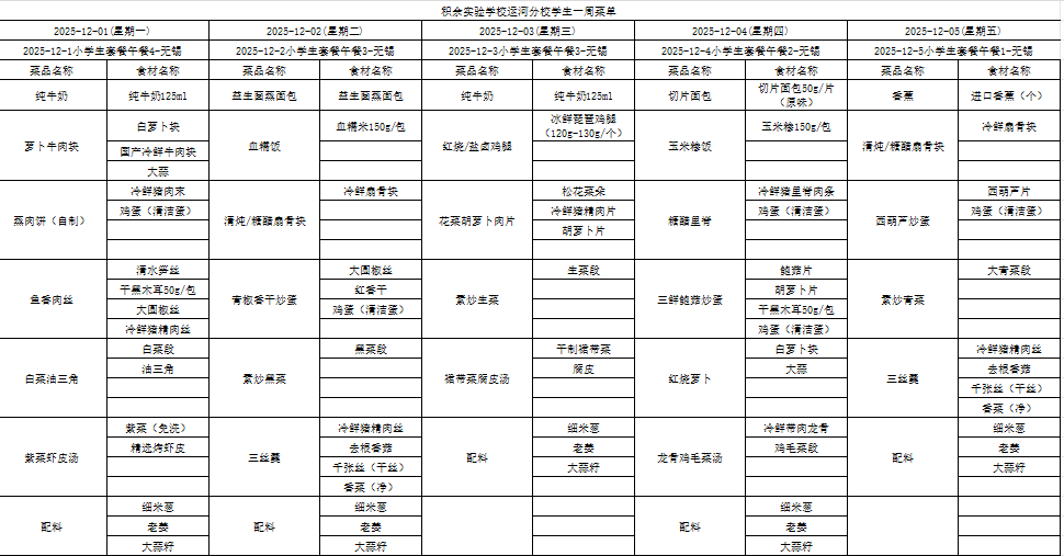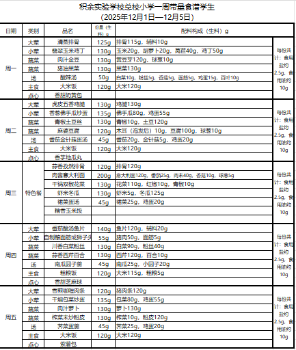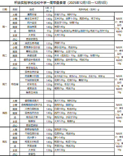 25年秋季第十六周菜单