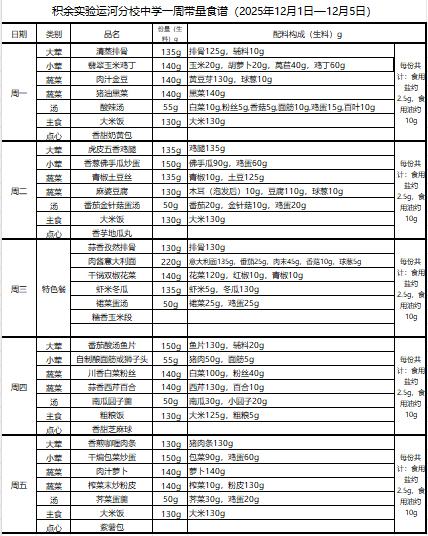 25年秋季第十五周菜单