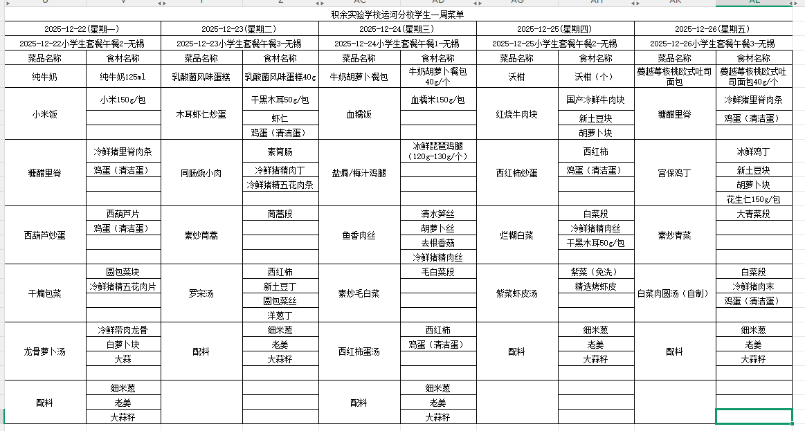 25年秋季第十八周菜单