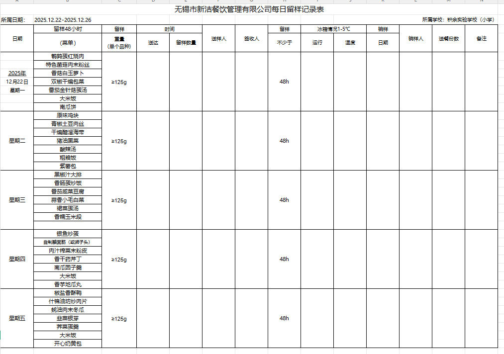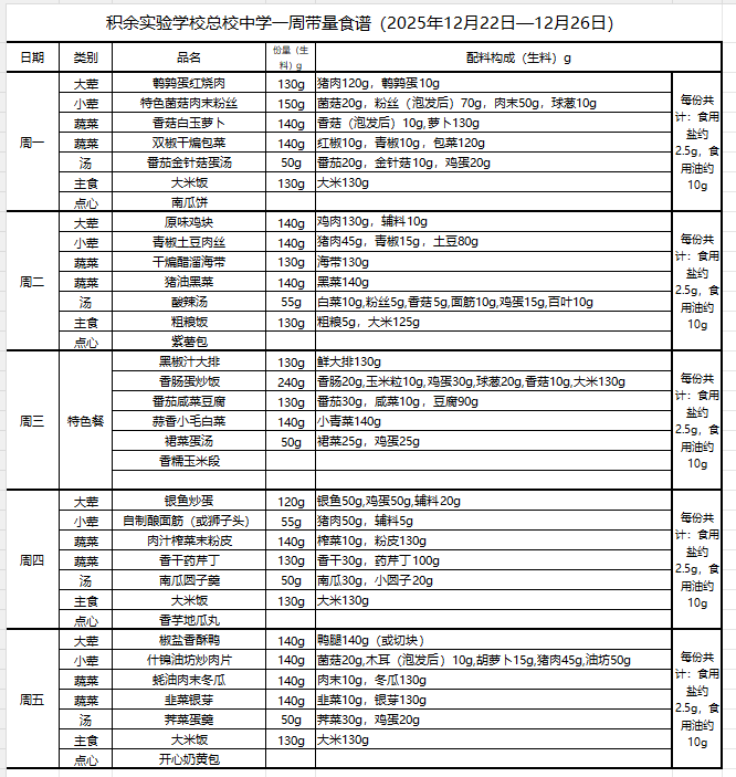 25年秋季第十五周菜单