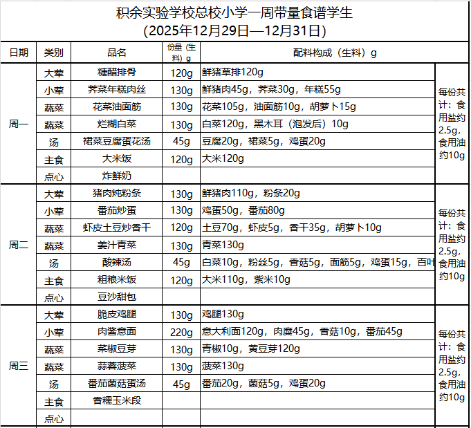 25年秋季第十六周菜单