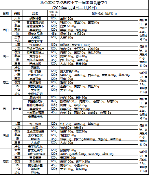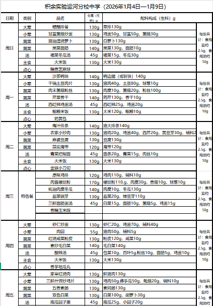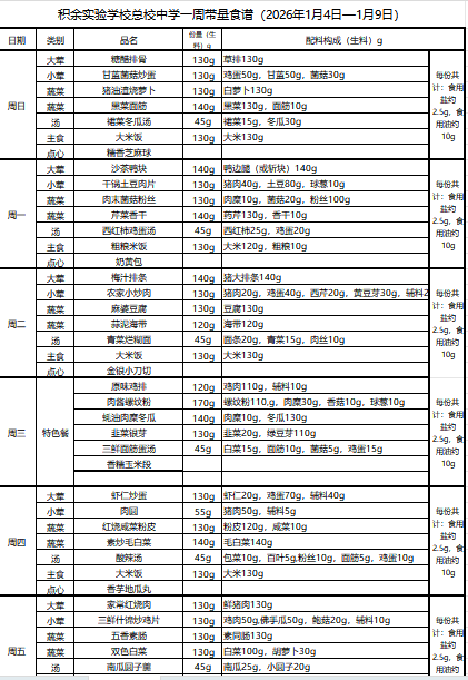 25年秋季第十九周菜单