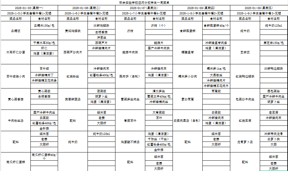 25年秋季第十六周菜单