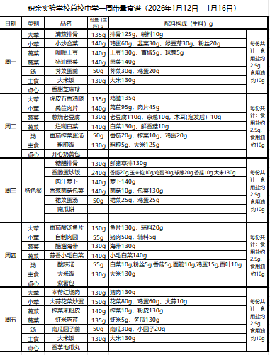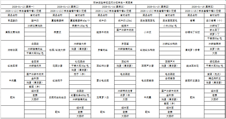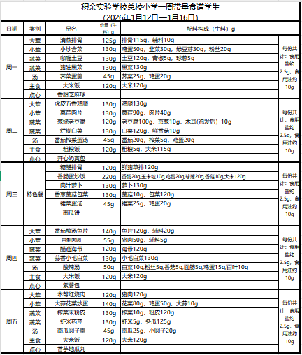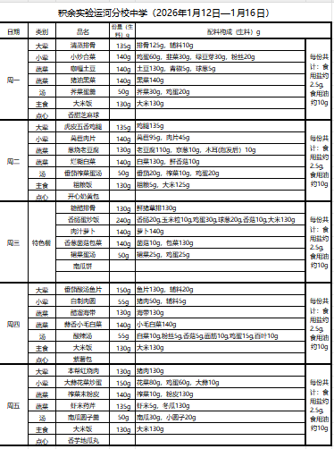 25年秋季第十六周菜单