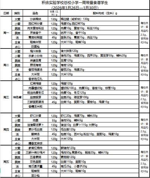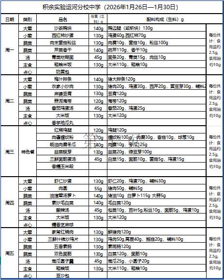 25年秋季第二十周菜单