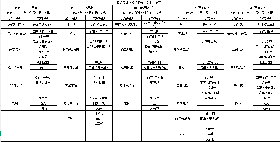 25年秋季第十八周菜单