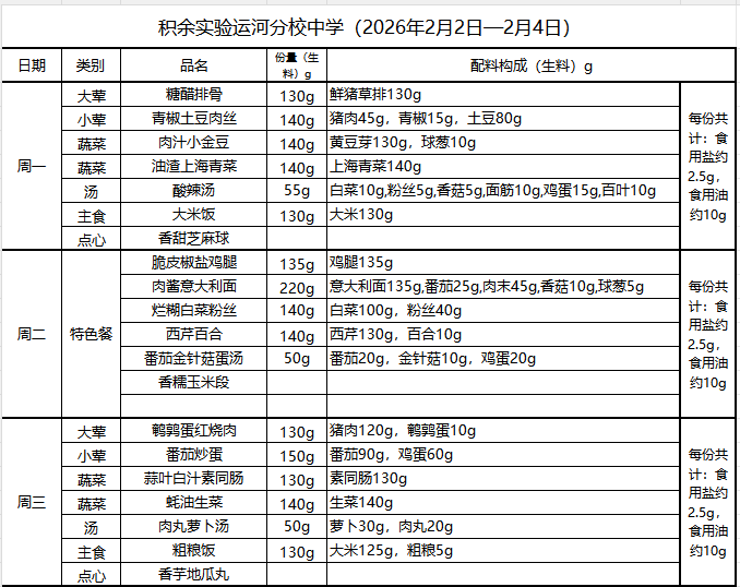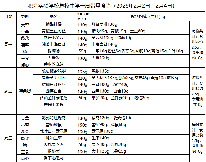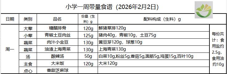 25年秋季第十九周菜单