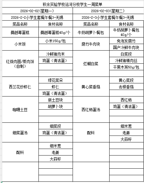 25年秋季第二十三周菜单